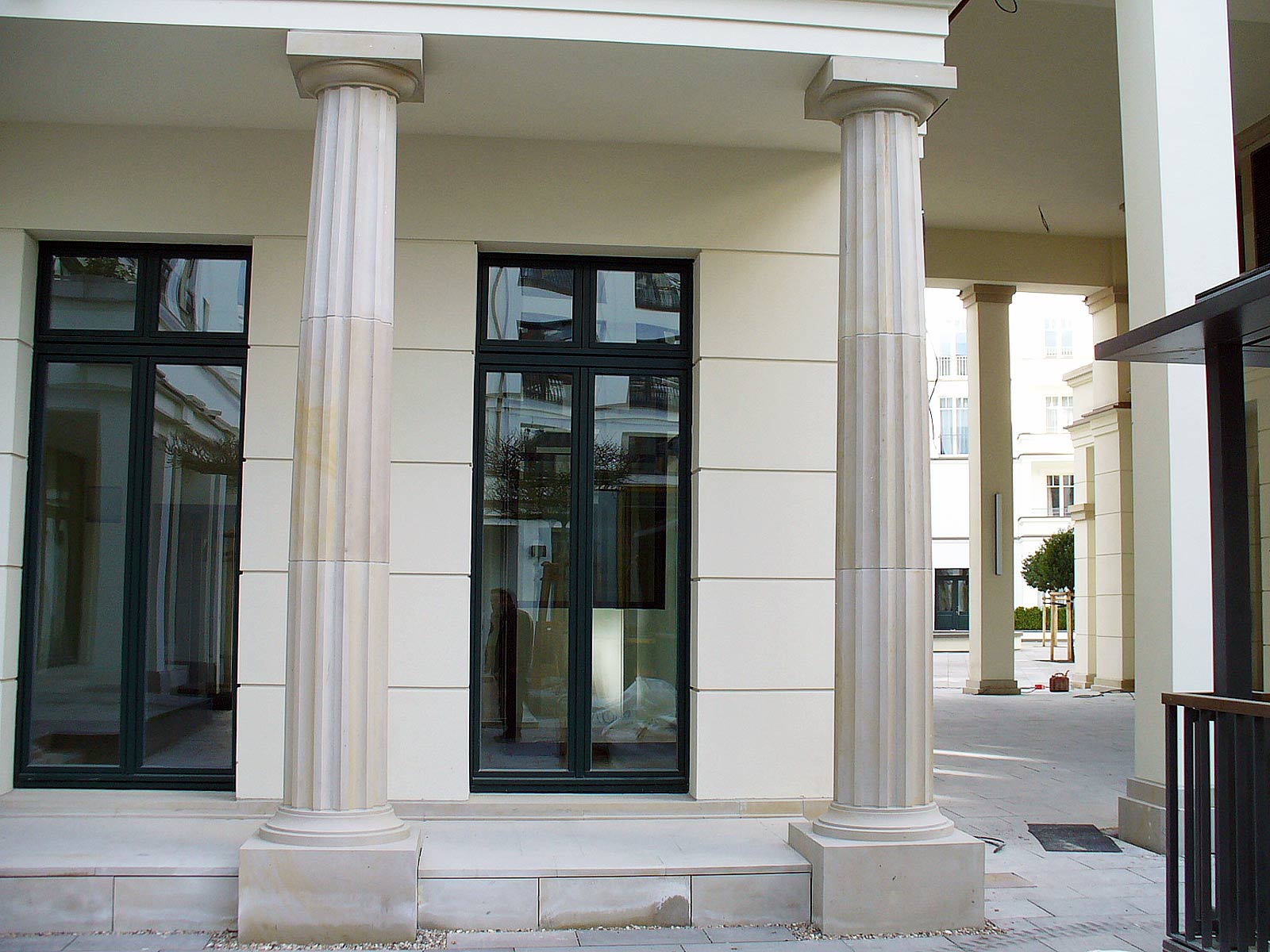 Das Farbspiel der natürlichen Steinmaserung kommt durch die gleichmäßige Form der Säule ganz besonders gut zur Geltung. Darüber hinaus sind Säulen aus Obernkirchener Sandstein® besonders haltbar und witterungsresistent.