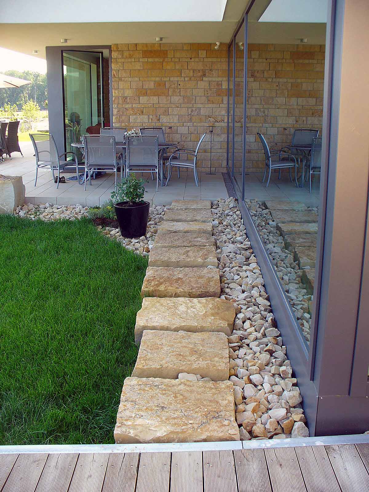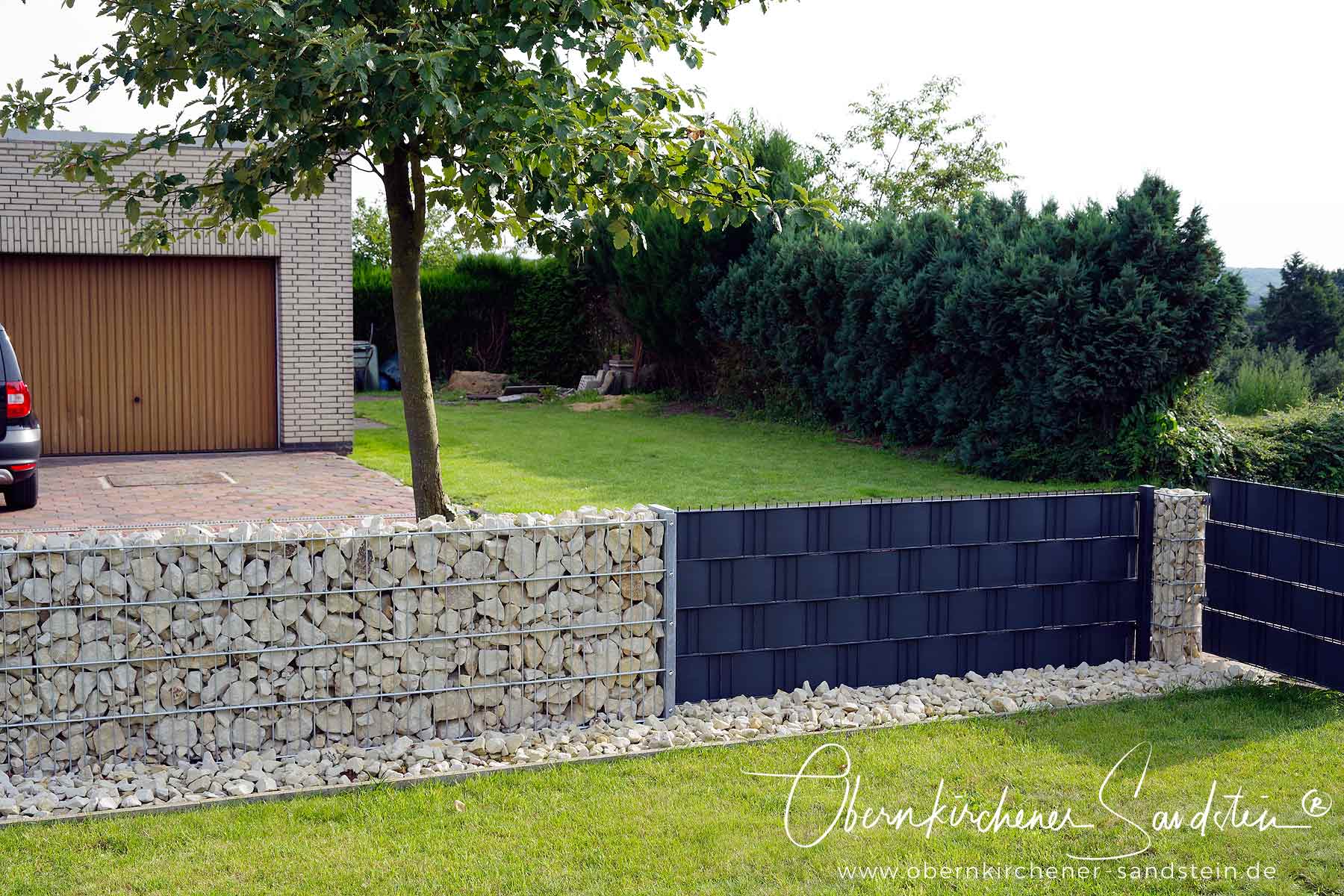 Ziersplitt und Gabionensteine